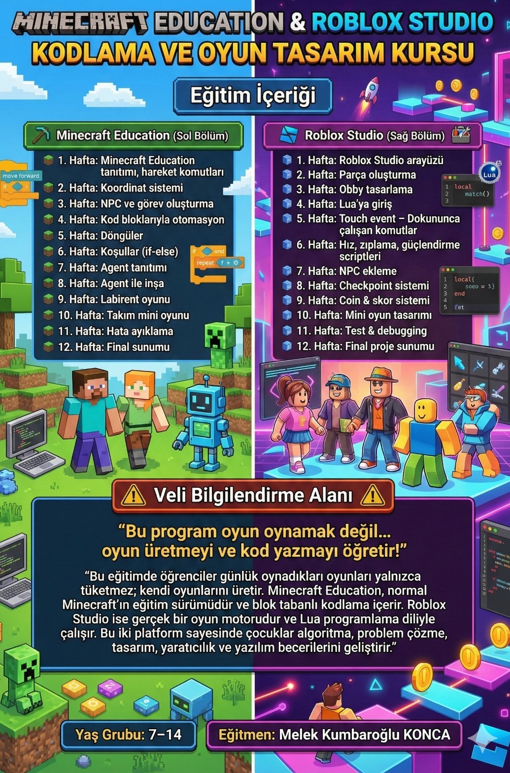 MINECRAFT EDUCATION & ROBLOX STUDIO KODLAMA VE OYUN TASARIM KURSU